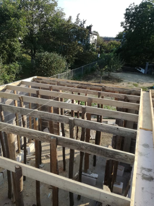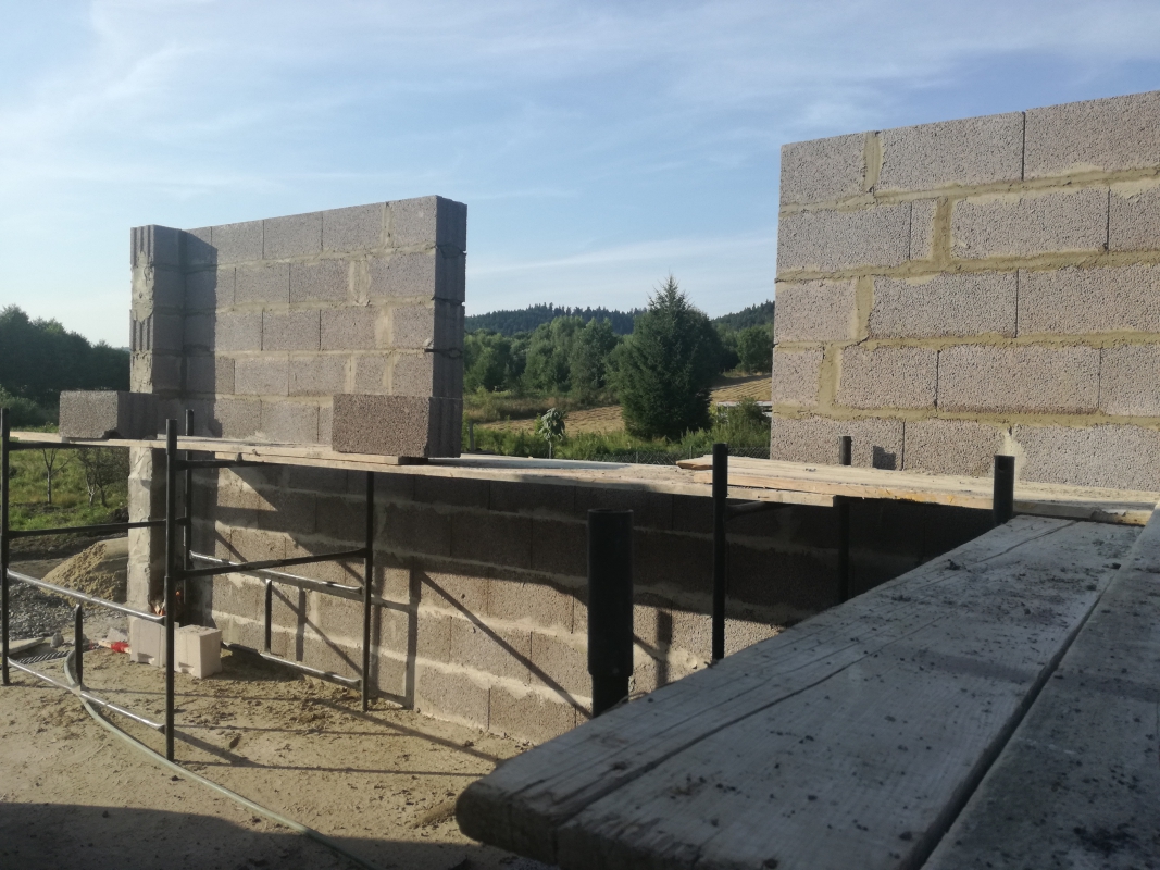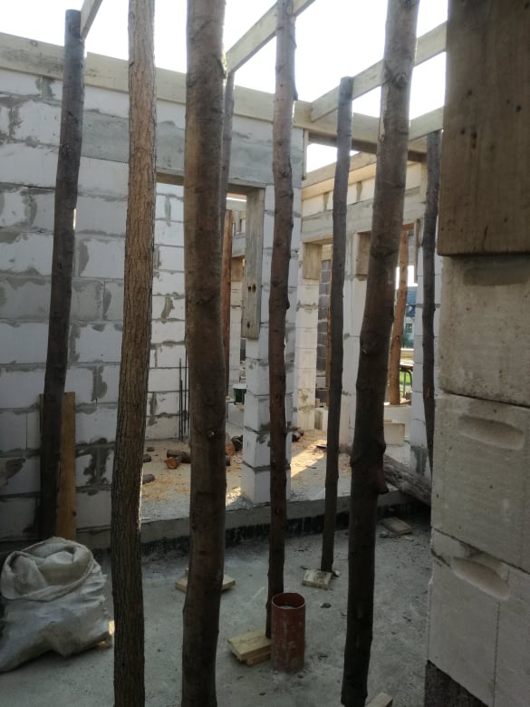 Nasz dom powstaje blisko lasu i ma na niego piękne widoki. Dodatkowo teraz pachnie w nim lasem! Oczywiście wszystko przez stemple i deski do szalowania płyty.