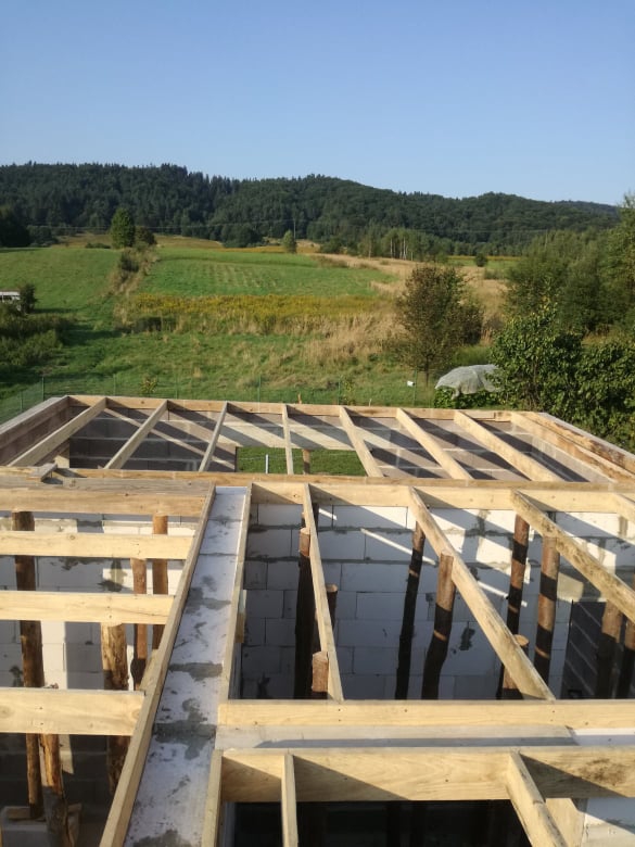 Dzisiaj ma również powstać szalunek pod schody. W między czasie wprowadziliśmy kilka zmian. Przed nami wybór pokrycia dachowego, które ma być wykonane w październiku. Na pewno chcemy mieć blachodachówkę płaską w ciemnym kolorze. Pozostałe kwestie pozostają do rozważenia i ustalenia w najbliższym czasie.